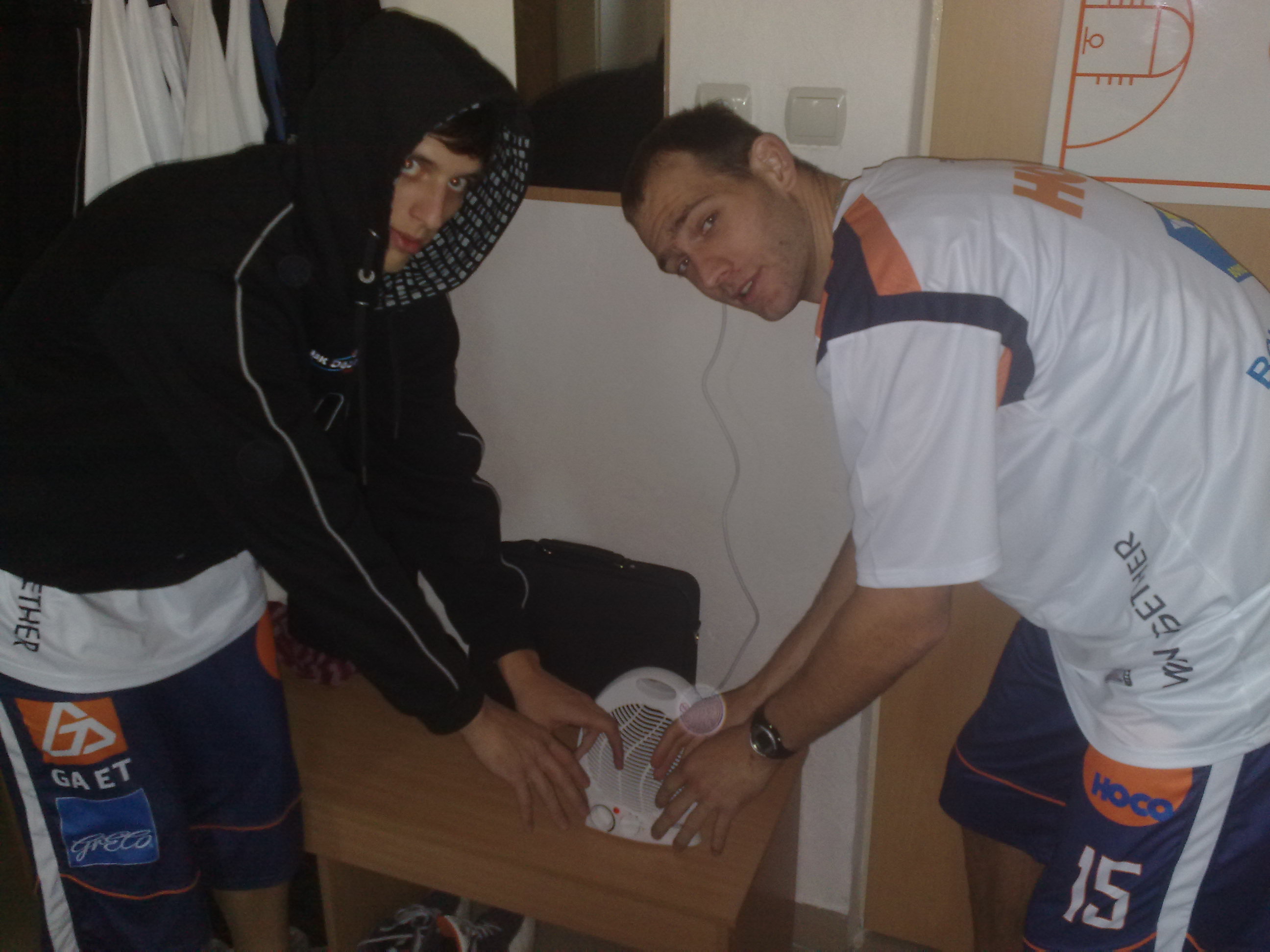 271020102128Hezký den. Nějak si opět musím trochu vylít srdíčko, protože to, co jsme zažili v Ostravě, se mi vůbec nelíbí a za náš tým si klasicky musím vylít srdíčko. Vůbec netuším z jakých příčin a popravdě mě to ani nezajímá, ale v Ostravě na nás přichystali pekelnou kosu. Ani ne tak v hale, ale v šatnách, v zázemí, kde se máme převlékat, sprchovat atd. A že říkám kosu, tím myslím kosu 🙂 Ono je venku par stupňů nad nulou a bohužel se v šatnách jaksi netopilo. Někdo si řekně a co jako??? No ale zkuste se být zpocený v takové kose, sprchovat se v takové zimě a radit se o dalších průběhu zápasu, o tom ani nemluvím . . . ale když když o tomhle zpětně přemýšlím, tak nám poločasová přestávke v této zimě alespoň nedovolila, jak se říká, usnou na vavříněch 🙂 Myslím ,že když je někde problém, tak se dá řešit trochu jinak a ne fukarem, který by vytopil maximalně akvárko větších rozměrů 🙂 Od jisté doby jsou v Ostravě propojené dvě šatně, ale jak používat obě, když v jedné je pár nad nulou? Těžkéééé…ale jak je vidět, tak ani tento problém nás nezastavil a k vykradení Ostravy prostě došlo 🙂 Snad se dnes nikdo nedostaví na trénink s tím, že ulehává do postele, protože včera na tréninku bylo „chrchlajích“ dost . . . tak dost negativismu, to já jen, že to občas vážně není jednoduché a i to špatné by se mělo říkat na venek!!V Ostravě to samozřejmě neberte jako kritiku 🙂 🙂 jen maličko 🙂 Fajn den a zítra v hale naviděnou … Kouba