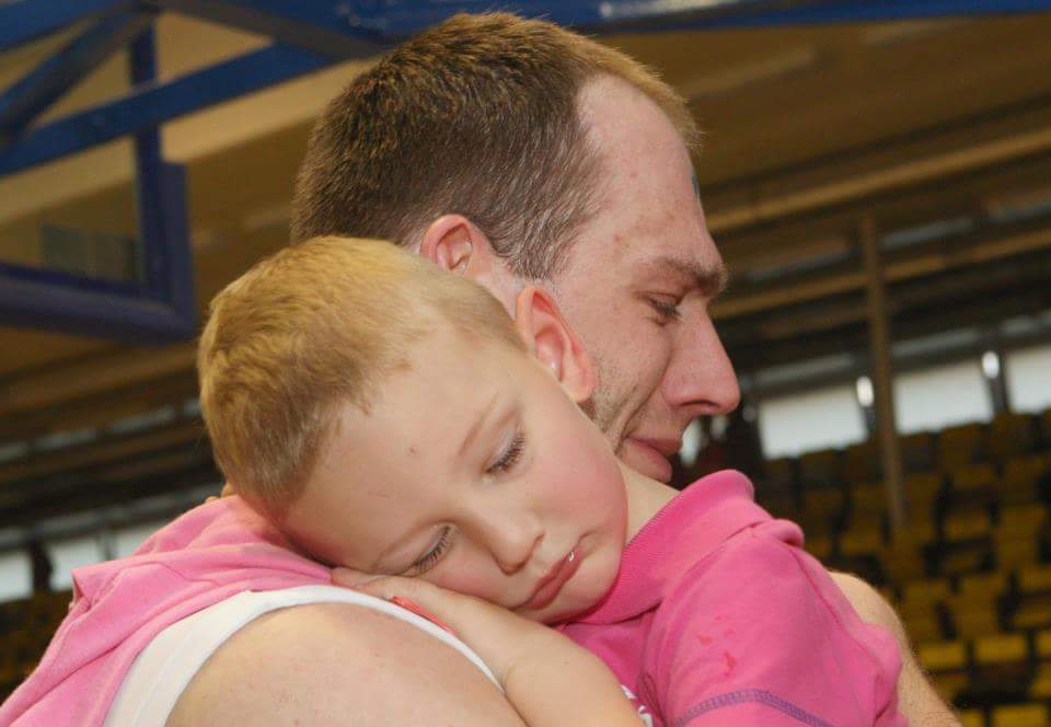 Když už jsem věděl, že Mára je Mára, tak jsem si říkal, bude sporťak po taťkovi. Musím říci, že sport miluji a vím, kolik toho dokáže lidem dát a tak vím, že je to ta správná cesta, nejen být dobrým sportovcem, ale i lepším člověkem. Pamatuji si na situaci kolem roku a půl jeho věku, kdy za mnou začal chodit na palubovku, kdy nevěděl, co se děje, jen viděl tátu po zápase a rozběhl se za ním a to jak po vyhraném, tak prohraném zápase. Také to byl jeden z mých snů, že mi může pomoci v dobách špatných, ale hlavně se radovat po basket Decin - ProstejovFB_IMG_1442344152416výhrách. Jednou jsem se dozvěděl, že to není úplně zvykem a musím se přiznat, že tenkrát mě to dost zasáhlo. Vysvětlete někomu, kdo ještě pořádně ani nemluví a opravdu tím žije, že teď ne, teď tatínek nemá čas, teď nemůže… Nakonec jsme si to vše ujasnili a vlastně to všemu jen pomohlo. Od té doby jsem zažil neskutečně mnoho bezprostředních radostí, ale samozřejmě i opačných emocí, které k tomu prostě patří. Teď se to již mění, teď už mluví hodně dobře a dokáže i zahubovat, co že jsme to dělali a nebo přímo já, takže když to vezmu zpětně, tak já si vlastně přitížil 🙂 Už nedostanu vynadáno jen od trenéra, ale rovnou na palubovce i od vlastního syna :-))) ale to jsme trochu odbočil….