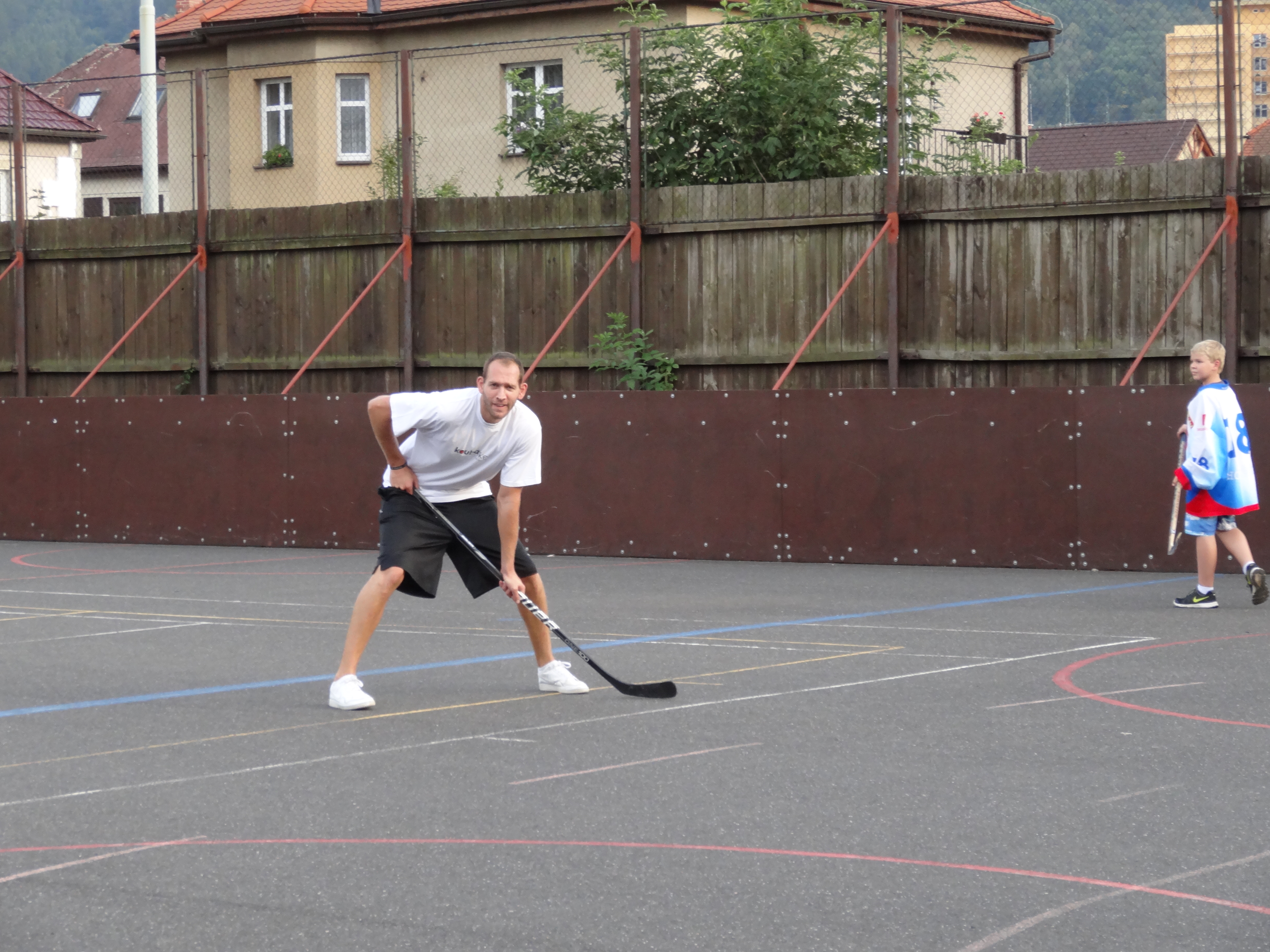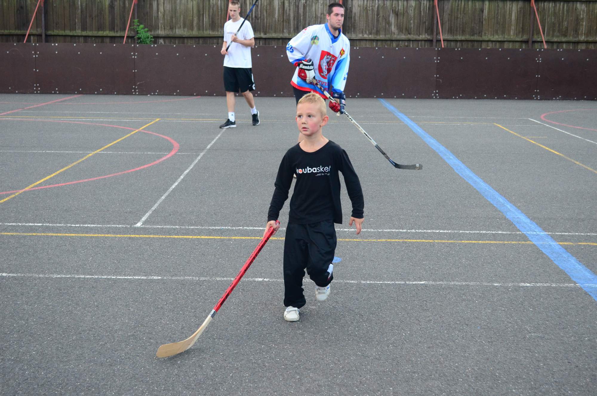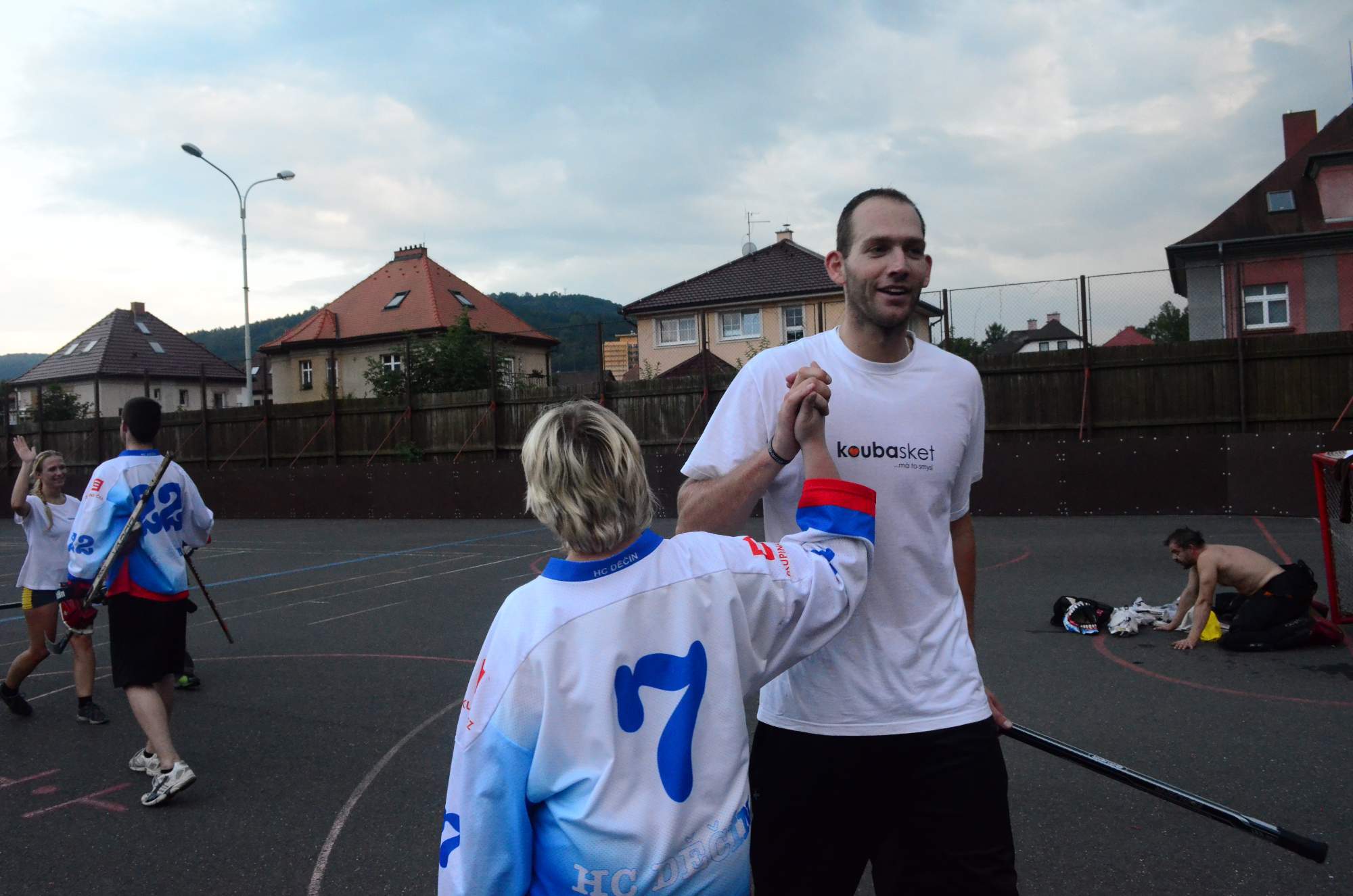 jsme byli jaksi unavení a tak jsme to posunuli přímo do hry, což se i přítomným dámám líbilo 🙂 Myslím, že jsme si perfektně zahráli a tak nějak se v Koubovi probouzel duch hokejbalisty a ohromně mě to bavilo. Nakonec z toho byly téměř dvě hodiny hraní a pekelná únava, jelikož se člověk opravdu i naběhá. Ale zase za ten zážitek to stálo. Sešlo se nás tam docela hodně a to jak hráčky nového hokejového družstva v Děčíně, které si zaslouží můj velký respekt, tak i hráči hokejbalu, hokeje a samozřejmě i my baskeťáci. Skvělé bylo, že si s námi šel zahrát i malej Mára, což byl pro něj zážitek asi na dva týdny vyprávění a konečně věděl, co je to ten hokejbal, jak mu taťka vypraví 🙂