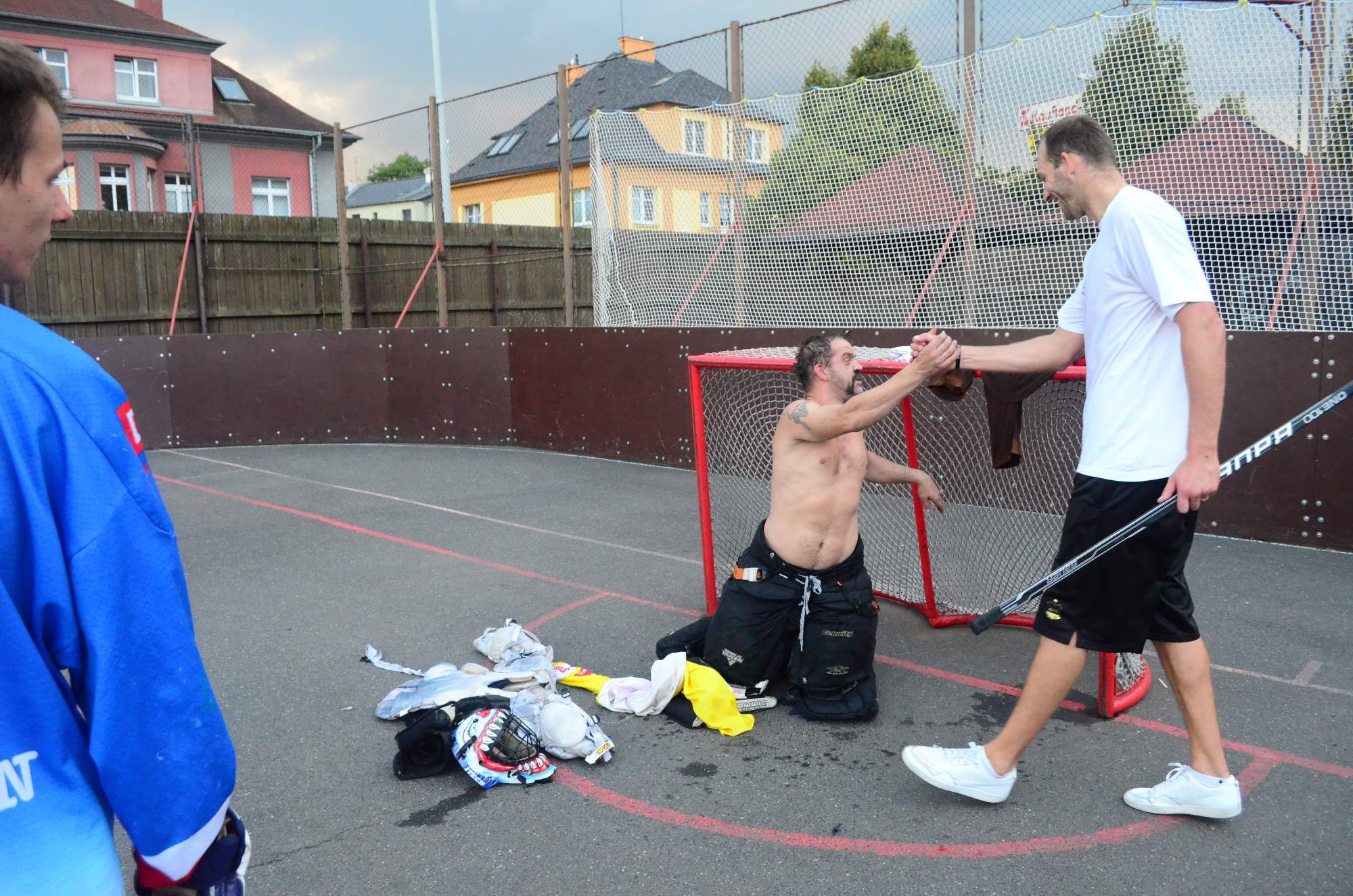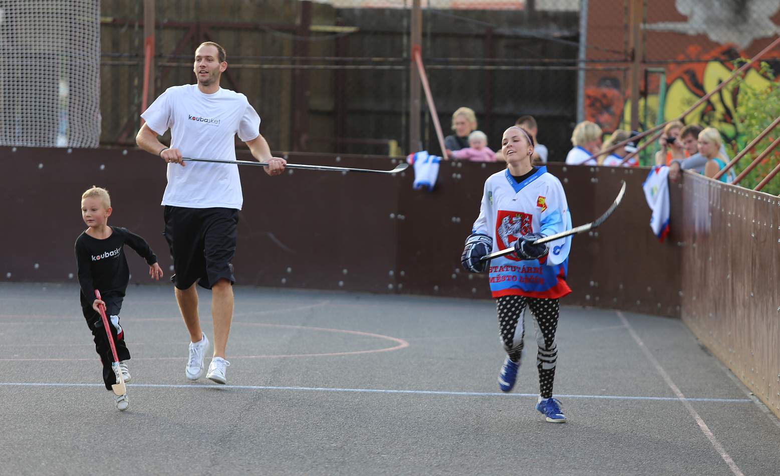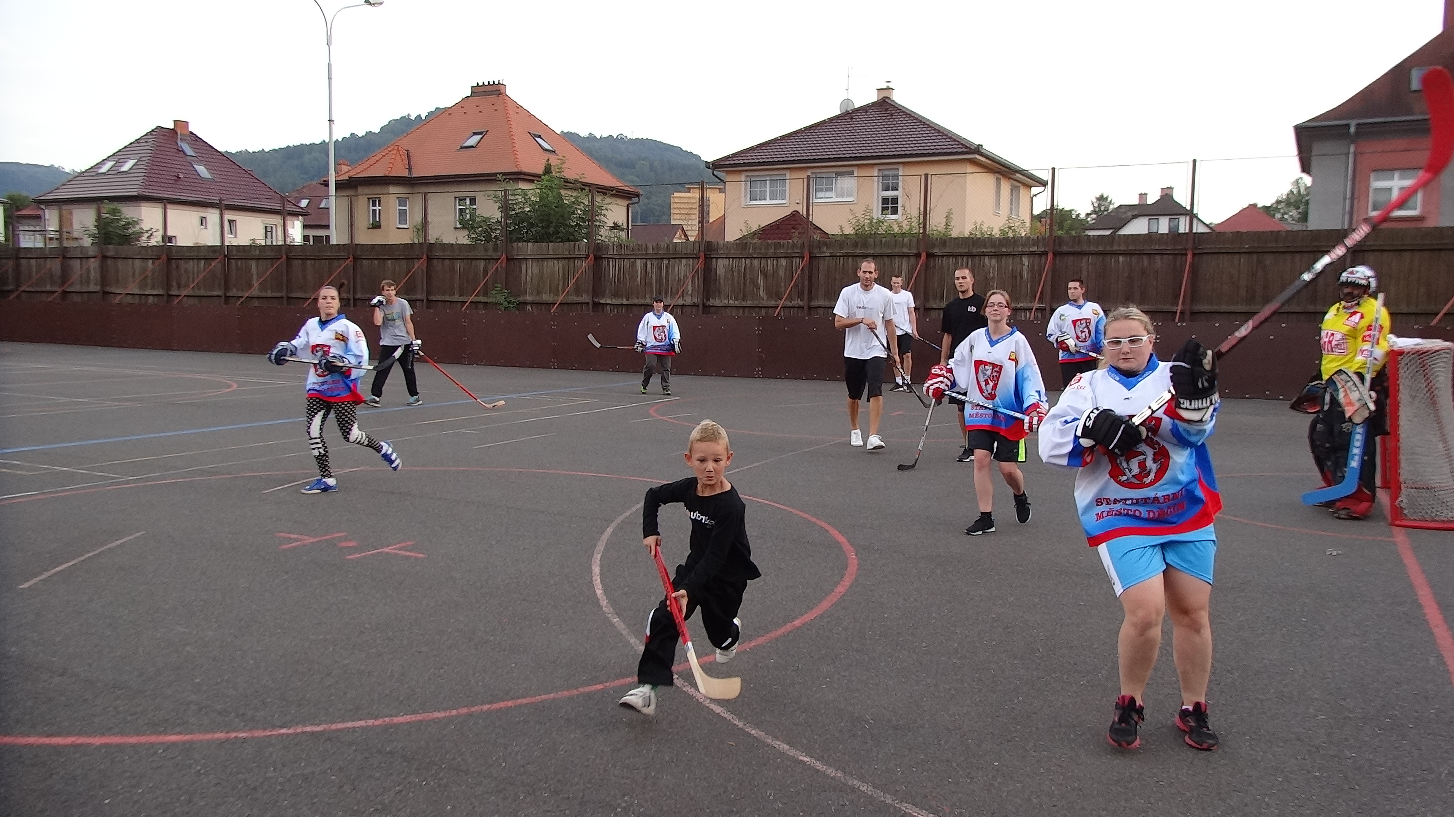 jsme byli jaksi unavení a tak jsme to posunuli přímo do hry, což se i přítomným dámám líbilo 🙂 Myslím, že jsme si perfektně zahráli a tak nějak se v Koubovi probouzel duch hokejbalisty a ohromně mě to bavilo. Nakonec z toho byly téměř dvě hodiny hraní a pekelná únava, jelikož se člověk opravdu i naběhá. Ale zase za ten zážitek to stálo. Sešlo se nás tam docela hodně a to jak hráčky nového hokejového družstva v Děčíně, které si zaslouží můj velký respekt, tak i hráči hokejbalu, hokeje a samozřejmě i my baskeťáci. Skvělé bylo, že si s námi šel zahrát i malej Mára, což byl pro něj zážitek asi na dva týdny vyprávění a konečně věděl, co je to ten hokejbal, jak mu taťka vypraví 🙂