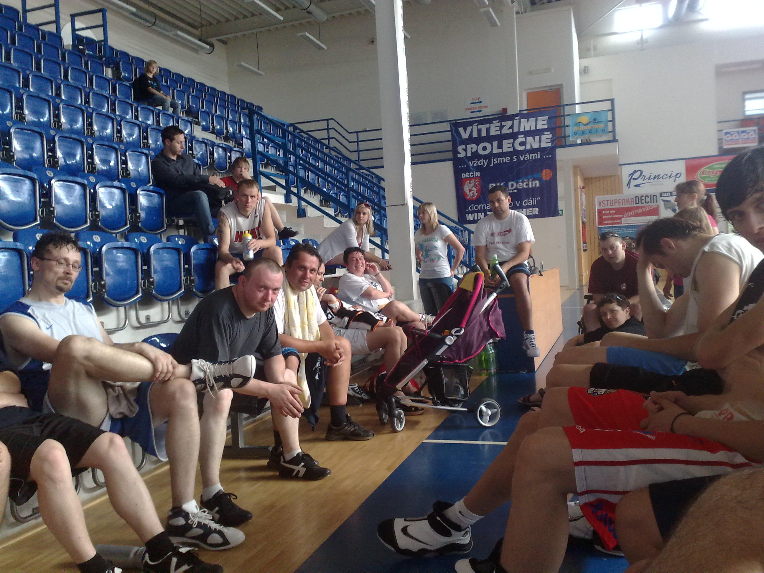 Je tady poslední celý červnový týden a to pro nás znamená brzký konec tréninků. Kluci před sebou mají posledních 5 dnů trénování a to znamená posledních pět tréninků v této sezóně. V srpnu již opět začnou ty krásné galeje letní přípravy, které nikdo nemá rád, ale jsou jasnou a velice důležitou součástí. Sezóna nám končí, volno začíná a tak samozřejmě proběhlo i rozloučení s fanoušky, které letos bylo celé basketbalové. Na příští rok jsem zkoušel uhádat hokejbal, tak uvidíme, možná se sejdem na hokejbalovým hřišti a trochu se posekáme hokejkama 🙂 🙂 Jinak setkání bylo skvělé, smíchu bylo dost, Valdano předvedl, že jak je vcuclý při našich utkáních,tak byl vcuclý i při tomto sranda zápase, takže vlastně vše při starém 🙂 Ale tak to má být, měl jasný cíl a tím bylo vítězství…a také se mu to povedlo, takže si mohl užívat pocit vítěze i se šampaňským 🙂 Po basketbalovém zápase, který trval 2x 2o minut bylo čas i na otázky před zaplněnou tribunou. Takže se Moky klasicky ptal na mládež 🙂 néé sranda 🙂 Příště se stavte a budete vědět mnohem víííc.. mějte se fajně a tento týden se vám tady ozve ještě někdo úplně jiný 🙂 🙂 Kouba