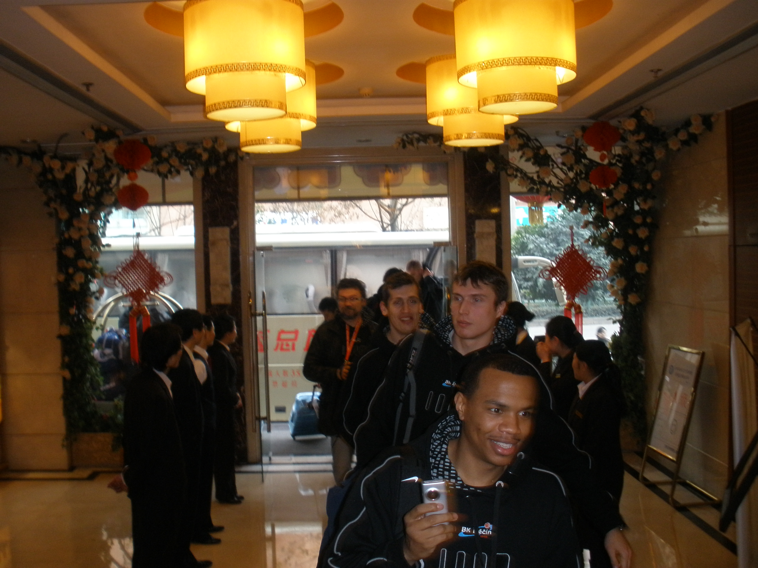 No tak co k tomu říci, raději jsem kolem letiště ani moc nefotil, protože když se o to Pišta pokusil, hned se na něho pan policista podíval tak nějak … no víte jak 🙂 Letiště u nás uvítalo dlouhatánskou chodbou, kde jsme si možná měli rozmyslet, jestli opravdu chceme vstoupit do země, či nikoliv, nebo nevím 🙂 Ale vstoupili jsme a všechni prošli i celní kontrolou, nejvíce lustrovali asi Bobana, na kterého museli být v třech, ale jinak to šlo všechno hladce. Venku na nás čekali dva průvodci, mladí kluci, sympaťáci a ti nás dovezli busem do hotelu. V hotelu nastoupená jednotka u dveří, no tak trochu prostě blázinec :)))) Ubytování je tady v pohodě, jídlo zvláštní, včera jsem ještě experimentoval, ale dneska se mi do toho moc nechtělo 🙂 Večer jsme šli společně všichni na procházku po městě, takovou jen krátkou… ale stála za to 🙂 Uličky kolem hlavní třídy, to je jedna velká restaurace, na každém rohu lidi jedí a nebo se také ještě stříhají. Některé restaurace vážně pěkné, ale některé… nevím,no… hygienické předpisy se tady asi nedodržují stejně jako ty dopravní… to samé je i s ostatníma obchůdkama. Prostě jsou tady takové dvě tváře města… rychle se rozvíjející město, které má v nitru vážně zvláštvní životní styl a pravidla…no a pak už byl večer a my všichni úplně hotoví a tak jsme šli spát….