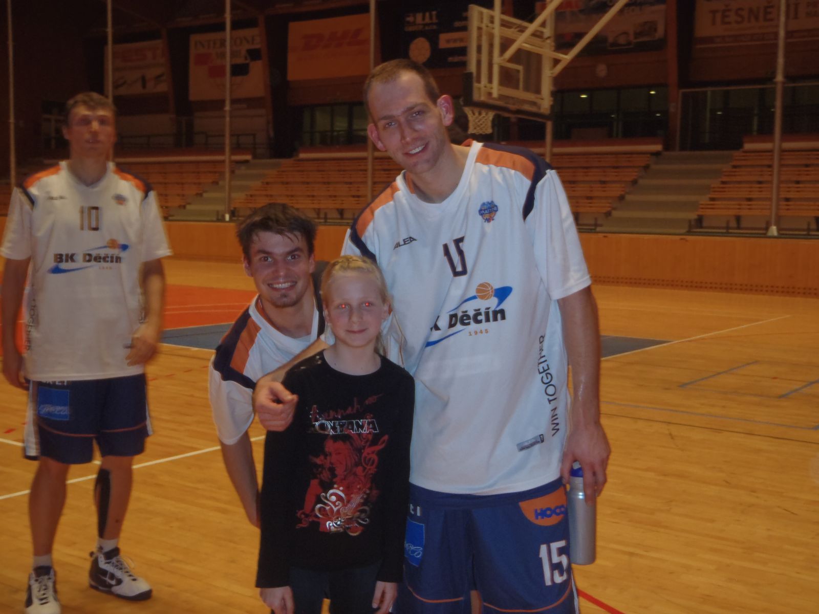 snimek-031Hezký den, ještě se musím a především se chci vrátit k zápasu v Plzni, odkud jsem odjížděl nejen s dobrým pocitem výhry, ale také s dobrým pocitem z velkého překvapení, které mi učinila  Peteříkovic rodinka. Rodinka, s kterou jsem se potkali v Bulharsku na dovolené a možná i díky tomu, že také mají blízko k basketbalu, tak jsme se tam i seznámili. Ale spíš za všechno mohl ten malej usměvavej Mareček, kterej tam chtěl být s každým hnedka kamarád, no a  jelikož Terka bylo stejného ražení,tak si hooodně padli do oka. Já o nich od července nevěděl a popravdě jsem úplně zapomněl, že slibovali, že až jednou budeme hrát v Plzni,tak že se zastaví. No a já vystoupil z busu a tam stála Terezka s taťkou a já zůstal s pusou otevřenou a nevěřil jsem. Opravdu mě hooodně překvapili a jak je vidět, tak sliby se prostě plní a za to bych jim chtěl moc poděkovat a nejen za to. Skvělá a veselá rodinka to je a tak to má být . . .  Malá Terka hraje také basket a to za BK Karpet Holýšov a tak od teďka všichni fandit Holýšovu včele s Terezkou 🙂 http://www.bkholysov.cz/?hra=76-tereza-peterikova